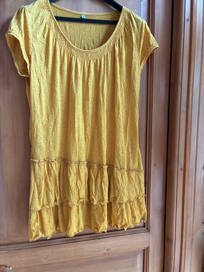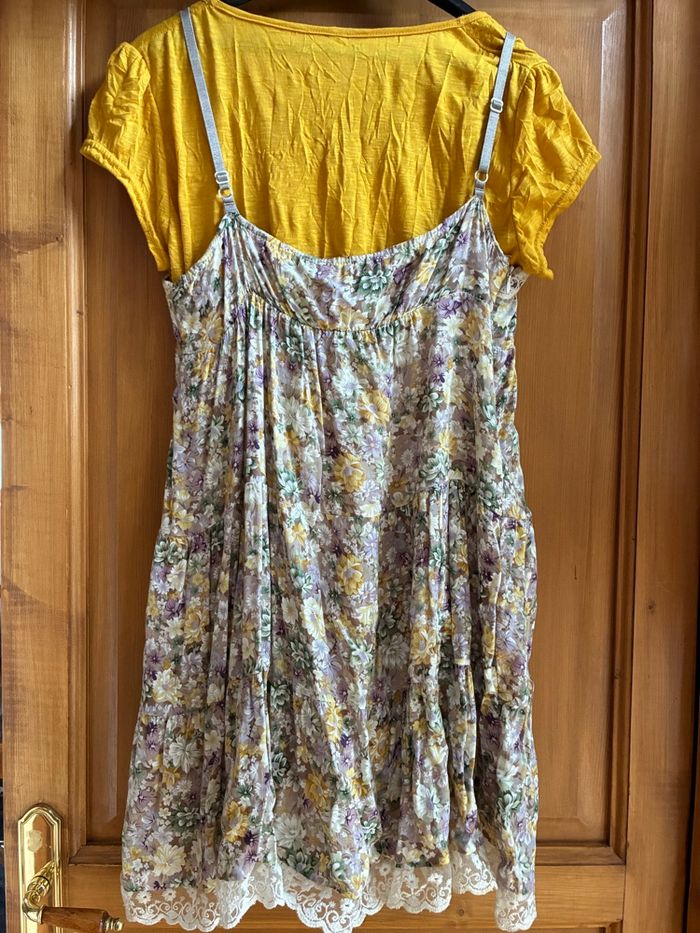 Robe imprimée à bretelles + sous robe coloris moutarde Taille 3