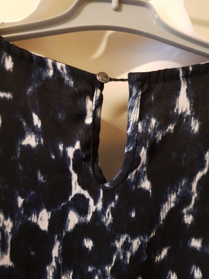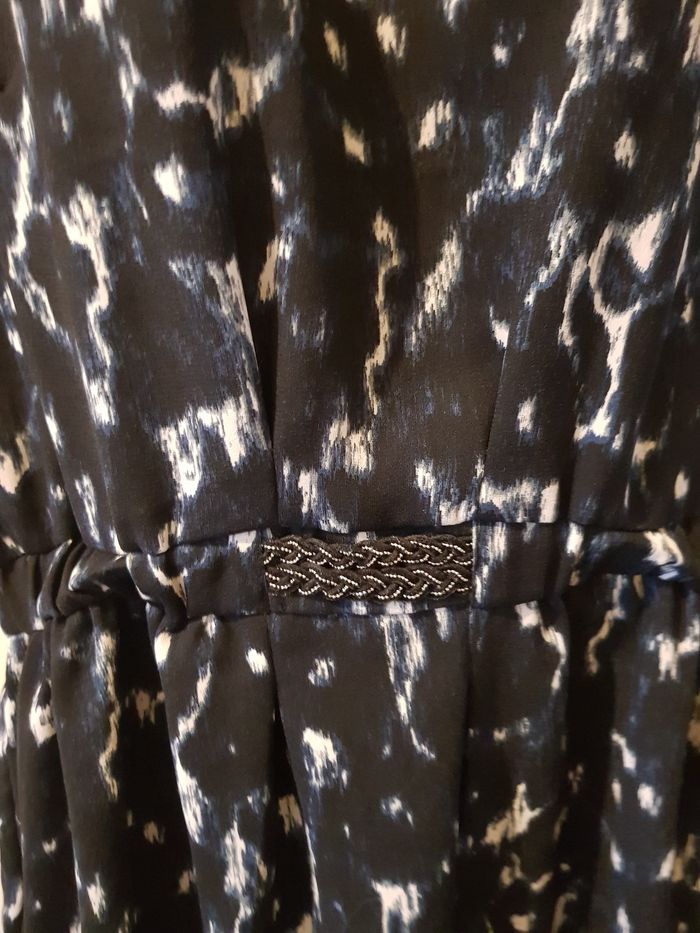 Robe Kaporal élégante et fluide, à manches courtes, avec taille légèrement cintrée et détail tressé à la ceinture. Motif abstrait bleu marine et noir, facile à porter au quotidien comme pour une occasion. Fermeture boutonnée au dos. Marque : Kaporal Taille : S Couleur : Bleu marine / Noir État : Très bon état