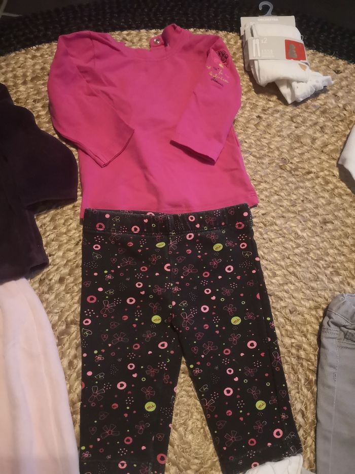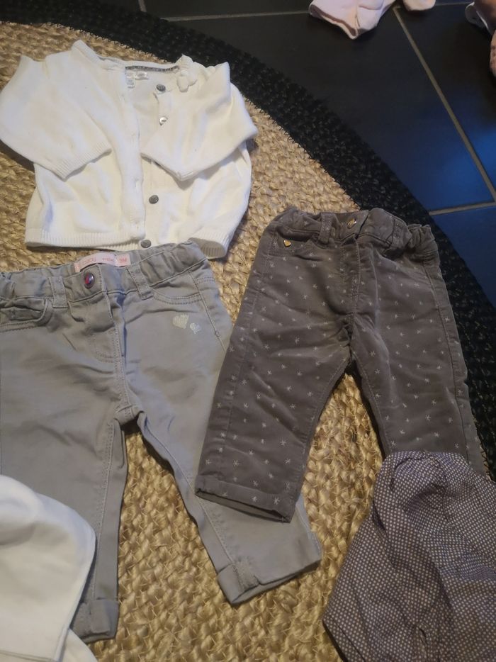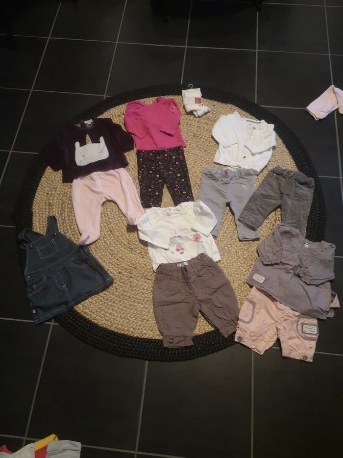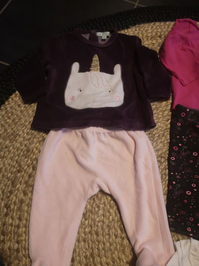 Lot fille, 1 pyjama, 3 ensembles, 1 robe, 1 gilet, 2 pantalons, divers marque, okaidi, orchestra, gemo, kiabi