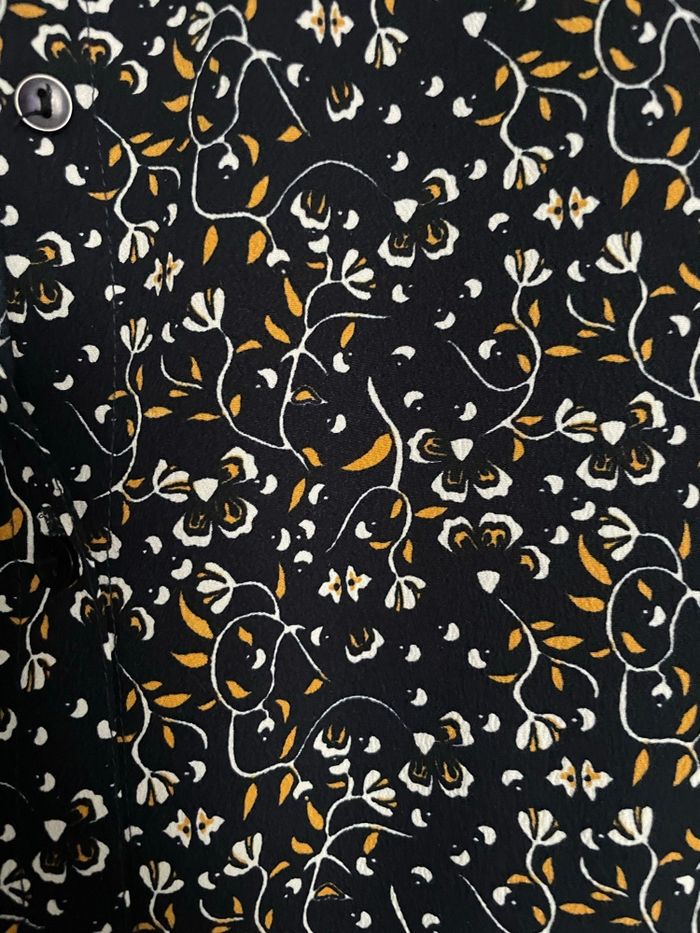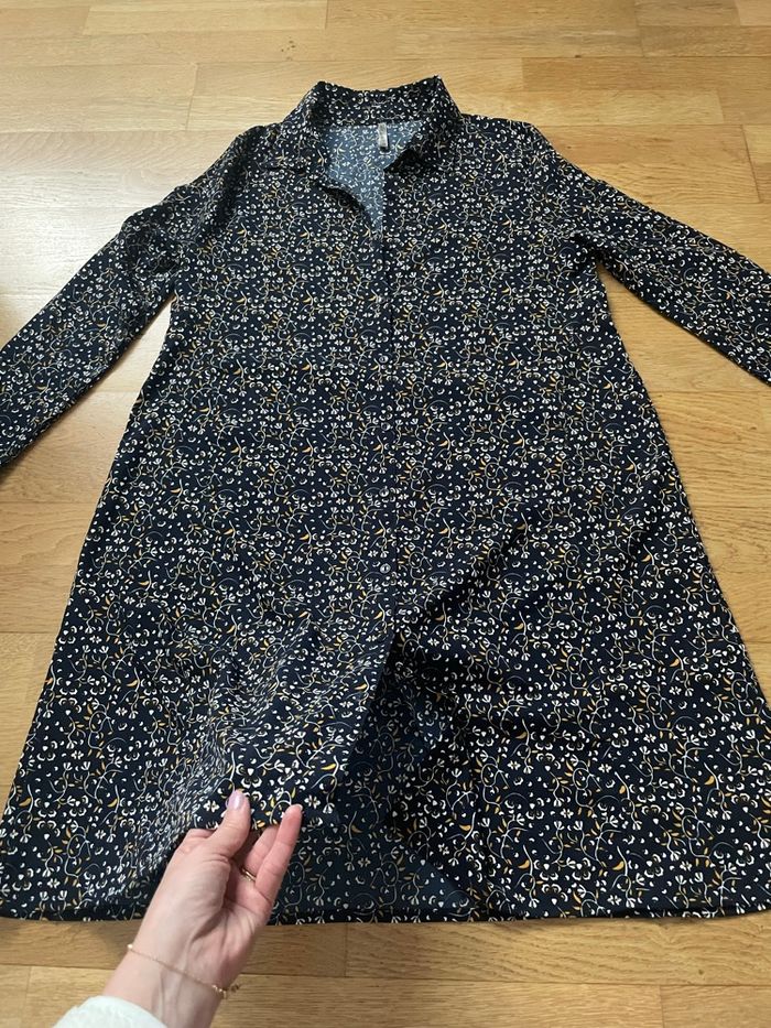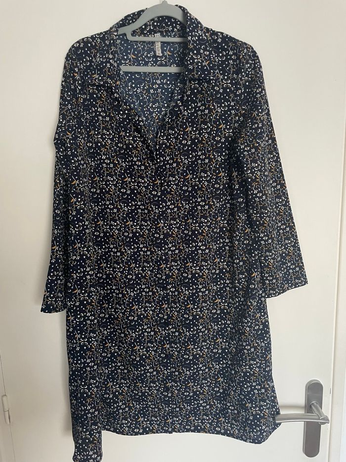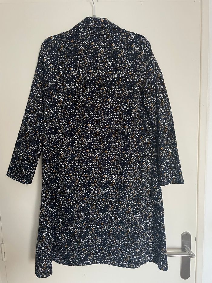 Robe chemise, légère, entièrement boutonnée Marque Ligne à suivre taille 38 Couleur bleu marine imprimé fleurs moutarde Très peu portée