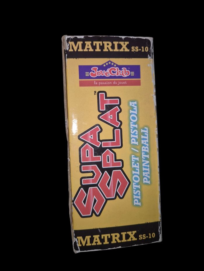 À vendre Pistolet paintball SupaSplat Matrix SS-10 (modèle orange iconique style "Matrix" !) Plus commercialisé C'est un jouet manuel à pompe (pas de gaz, pas de piles), qui tire des petites billes de peinture .50 cal lavables à l'eau (non toxique, éclate à l'impact). État : NEUF : jamais utilisé Boîte usée dû au stockage Modèle plus commercialisé→ pièce rare pour collectionneurs ou fans de jouets old-school ! Contenu complet inclus : Pistolet orange Matrix SS-10 10 billes de peinture + 10 bonus (total 20, couleurs variées) 75 billes en bonus annoncées (à confirmer si toujours là/scellées) Lunettes de protection (obligatoires !) Cible d'entraînement Tube chargeur + accessoires visibles sur photos Portée max annoncée : jusqu'à 15-20 mètres Attention : +8 ans ou sous surveillance adulte (indiqué sur la boîte).