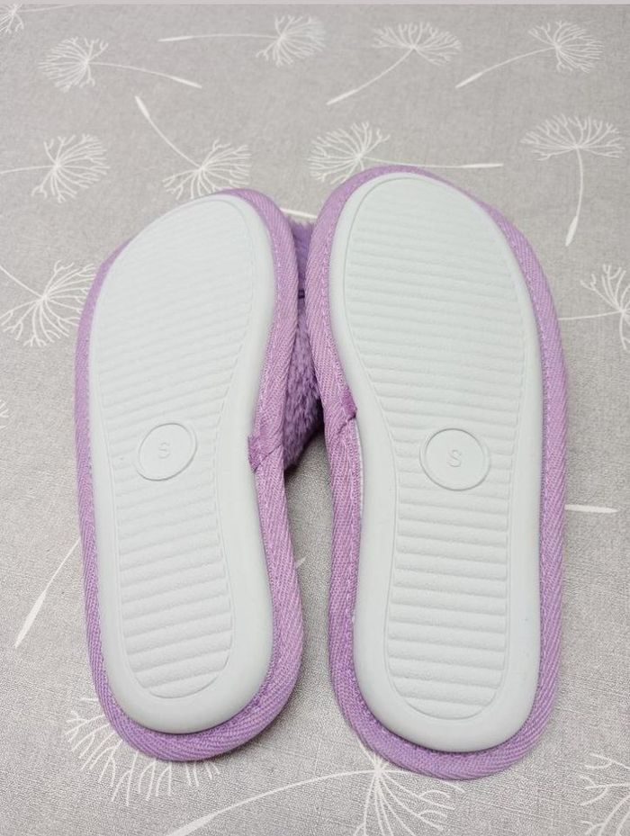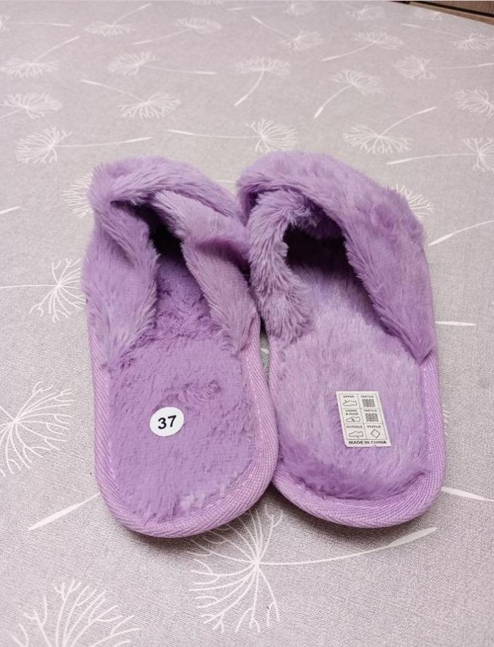 Pantoufles couleur lilas, toutes douces, ouvertes sur le devant. Pointure 37. Neuves