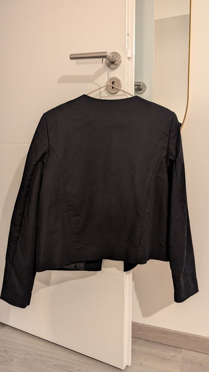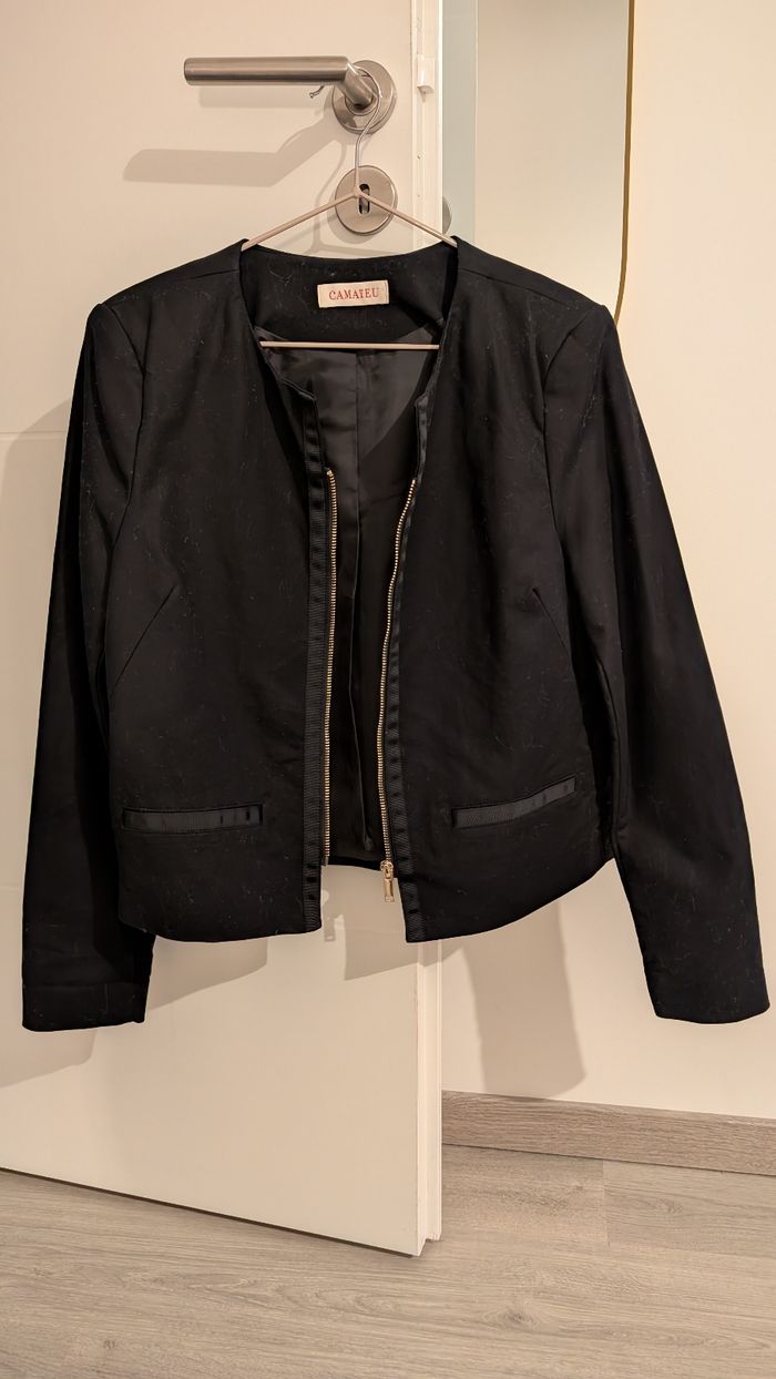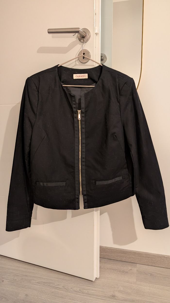 Bonjour, Je vends cette veste neuve jamais portée sans étiquette. Il s'agit d'une veste noire de chez Camaïeu en taille 40 qui fait très habillée. N'hésitez pas à faire une offre 🙂.
