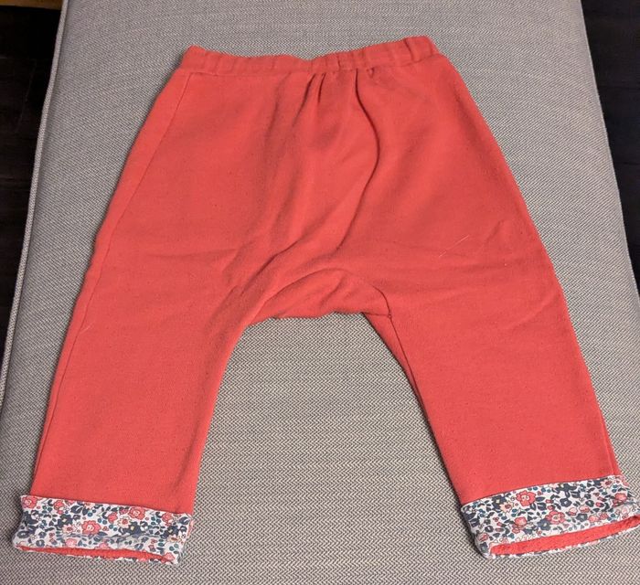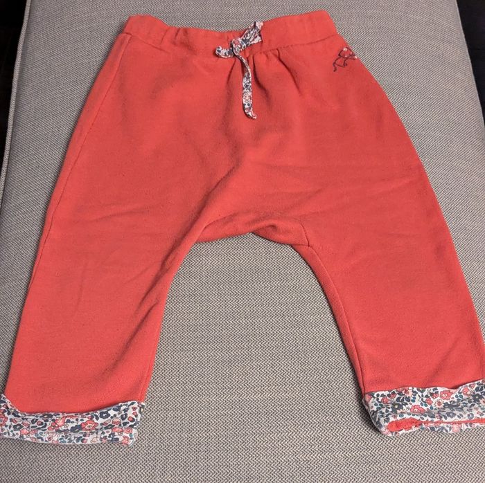 Joli pantalon rouge type jogging de la marque Sergent major. Taille 18 mois. Jolis détails comme les motifs floraux et un petit chat Très bon état (juste des motifs effacé très légèrement en bas des jambes, cf photo) Envoi rapide