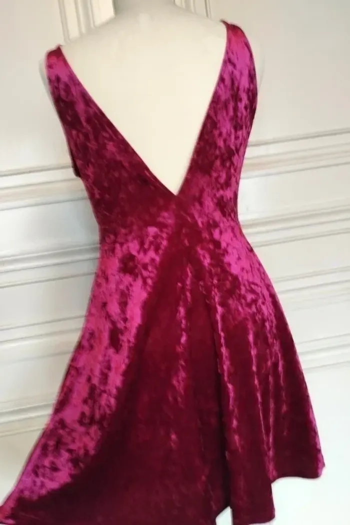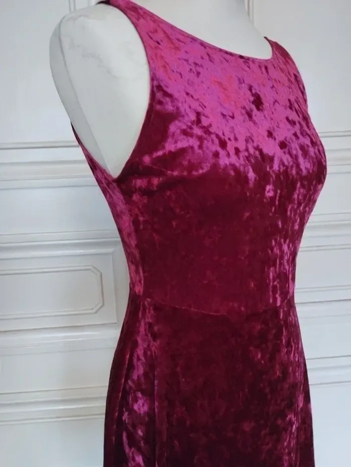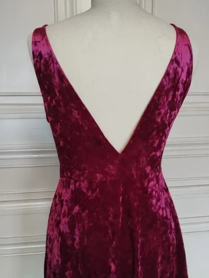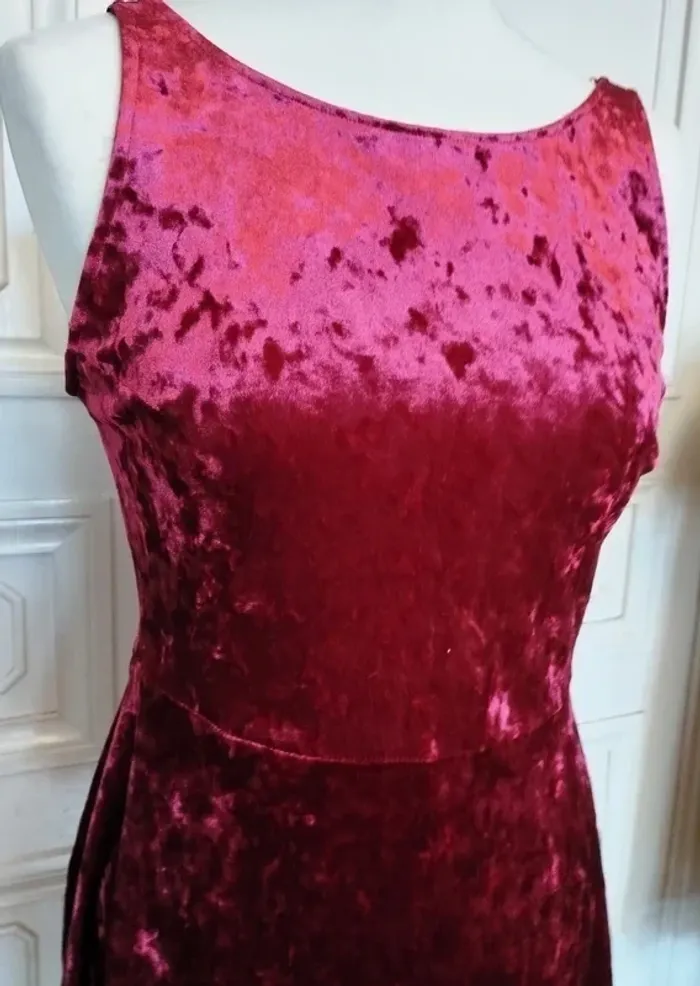 SOMPTUEUSE ROBE TS/M PANNE DE VELOURS ROUGE JOLIS REFLETS SELON LA LUMINOSITE LIGNE FLATTEUSE TAILLE APPUYEE ET EVASEE SOUS TAILLE TAILLE ELASTIQUEE 37 A 42 CM TENUE ET TOMBé IMPECCABLE GRAND DECOLLETé V AU DOS ULTRA CONFORTABLE EXTENSIBLE EPAULES 36 CM BUSTE 48 CM TAILLE 37 A 42 CM BAS 92 CM LONGUEUR 87 CM