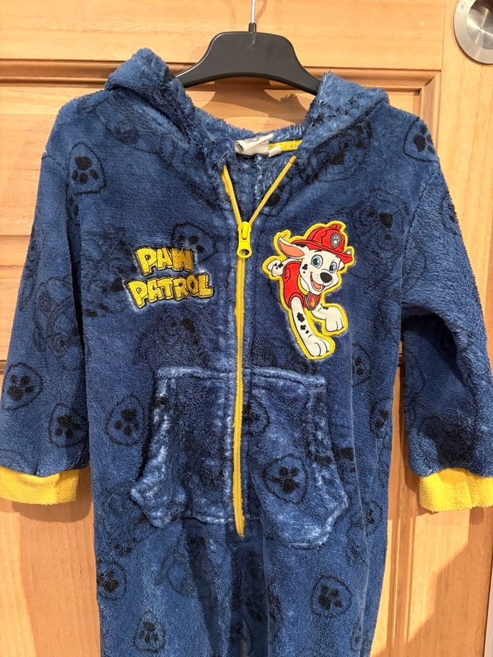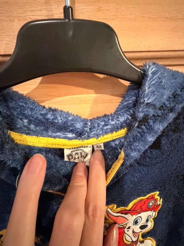 Je vends une combinaison polaire enfant Pat’ Patrouille, taille 4 ans. Un modèle très doux, chaud et confortable, idéal pour la maison, le matin ou le soir 🌙 ✨ Détails : • Coloris bleu marine avec motifs pattes • Personnage Marcus (Paw Patrol) brodé • Capuche • Fermeture zippée sur le devant • Poches pratiques • Poignets et chevilles resserrés jaunes 👕 État : très bon état général, portée mais bien entretenue (voir photos). 🏠 Maison non-fumeur. 📦 Envoi rapide et soigné 💌 N’hésite pas à me contacter pour toute question, je réponds avec plaisir.