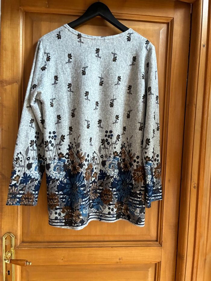 Polo gris à fleurs , bas imprimé bleu  - photo numéro 2