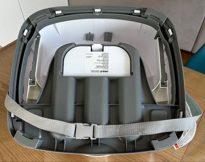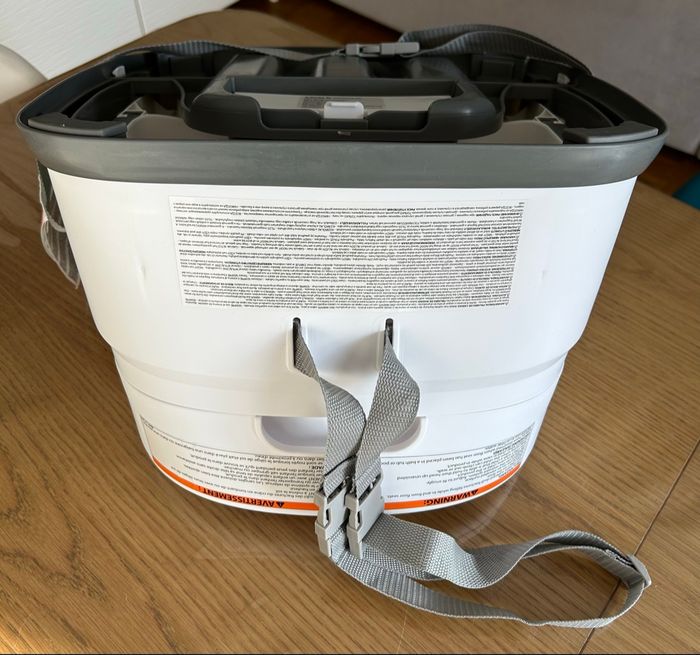 Réhausseur de chaise 2 en 1 avec harnais de sécurité 3 points. Tablette amovible qui se range sous le siège . Les éléments en mousse (beige) sont amovibles lorsque l’enfant grandit.