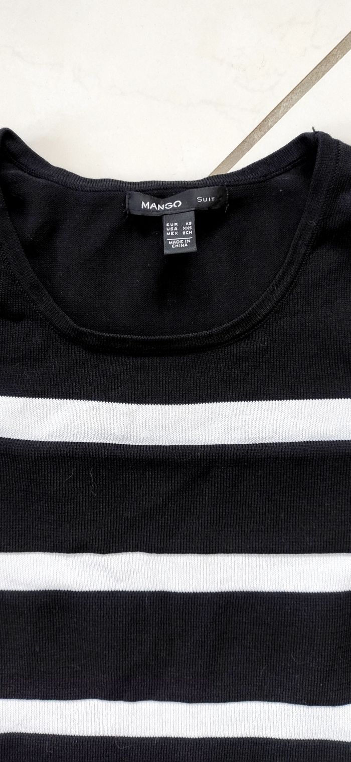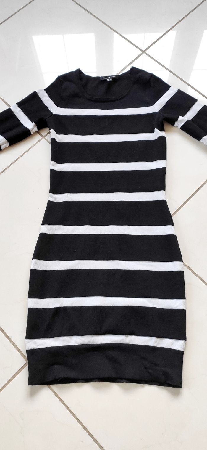 Robe pull rayée noir et blanc. Longueur 80cm Manches 3/4 Matière épaisse.