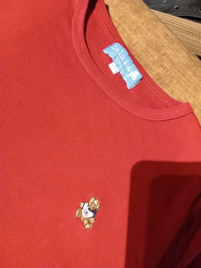 1 blanc resserré en bas "Wild life", marque Vertbaudet 1 chemisier, marque Cyrillus 1 avec motif brillant, marque Lulu Castagnette 1 rouge à motif, marque Hannah Montana 1 rouge avec ourson, marque Lulu Kids De nombreux autres vêtements enfants tous âges dans ma boutique.