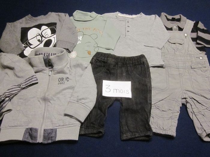 3m, salopette + polo ml + 3 hauts ml + jean + veste à capuche (amovible) réversible
