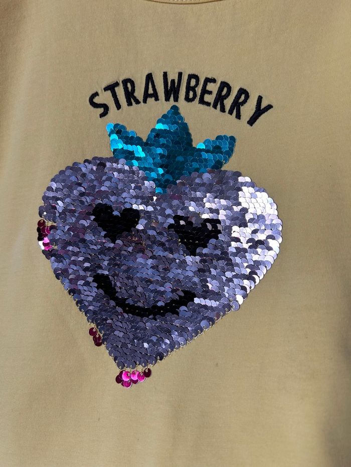 T-shirt jaune fraise rose sequins 4 ans Orchestra