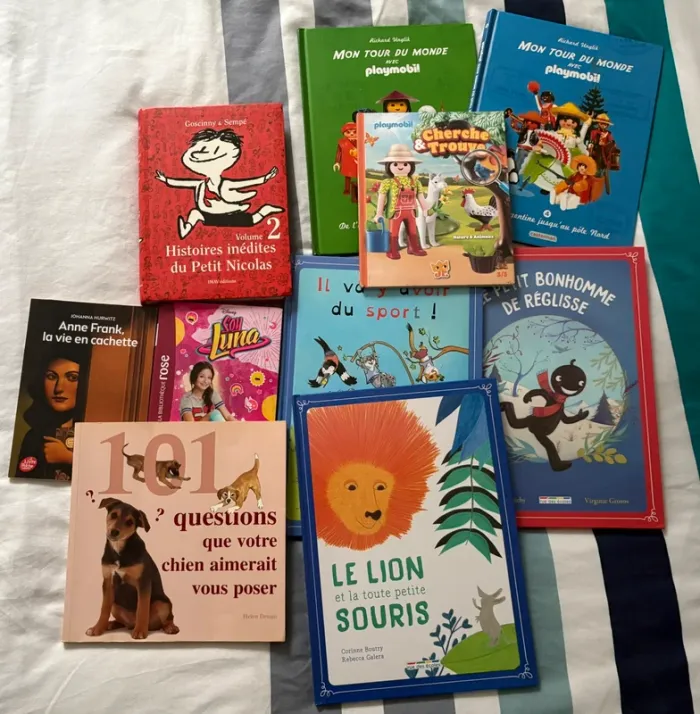 Lot livres enfants en tout genre, bon état général (le livre sur le chien est en trop dans le lot)