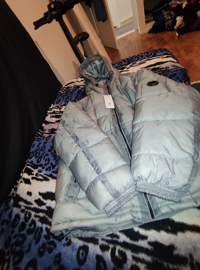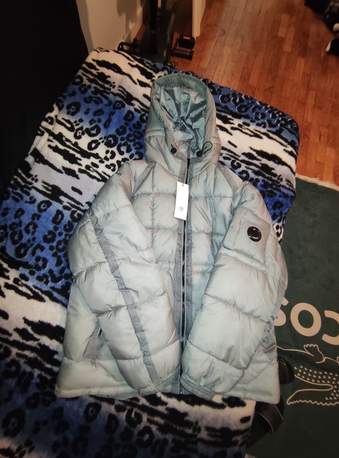 Je vends cette doudoune CP company taille L avec étiquette en parfait état juste il y a une petite déchirure regarder la dernière photo mais ça ne se voit pas rien de grave