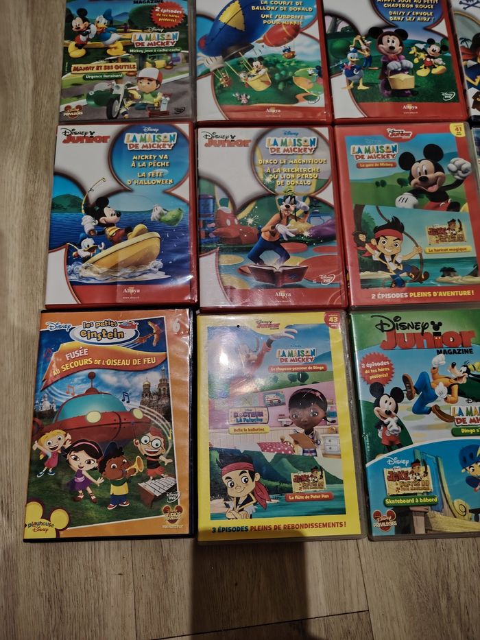 Le lot se compose de 23 DVD Manny et ses outils Docteur la peluche La maison de Mickey Les petits Einstein Lot de 16 magazines Le tout en état correct Certains magazines on été beaucoup lu N'hésitez pas à regarder mon dressing j'ai également les livres de disponible