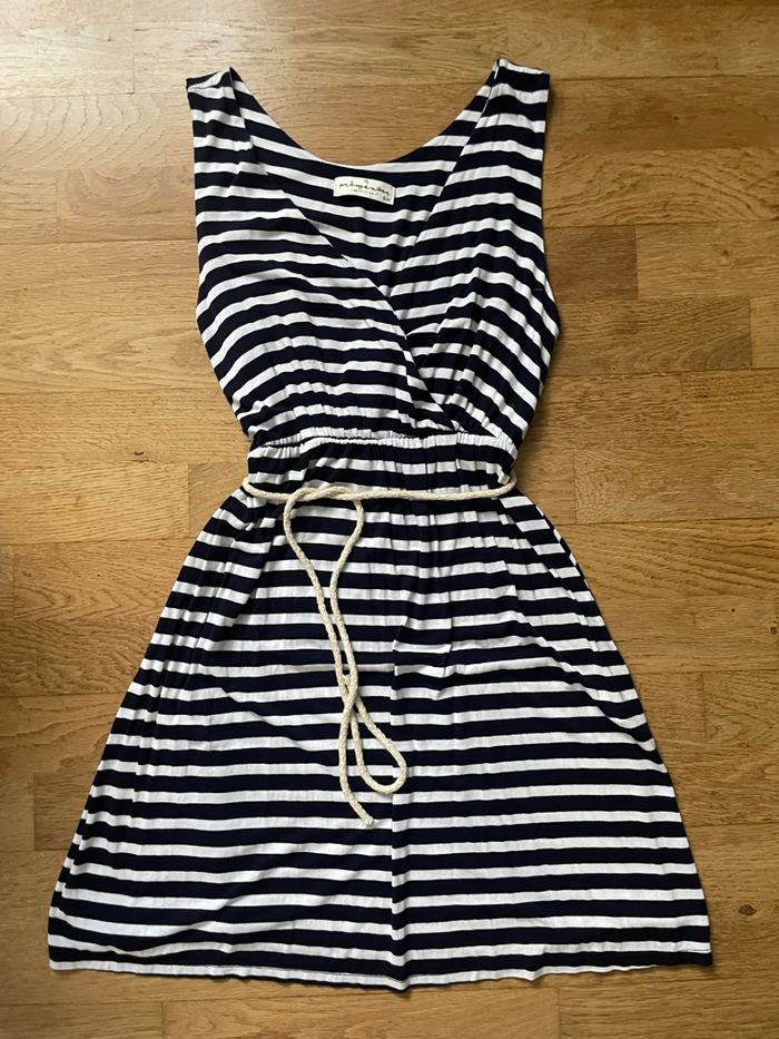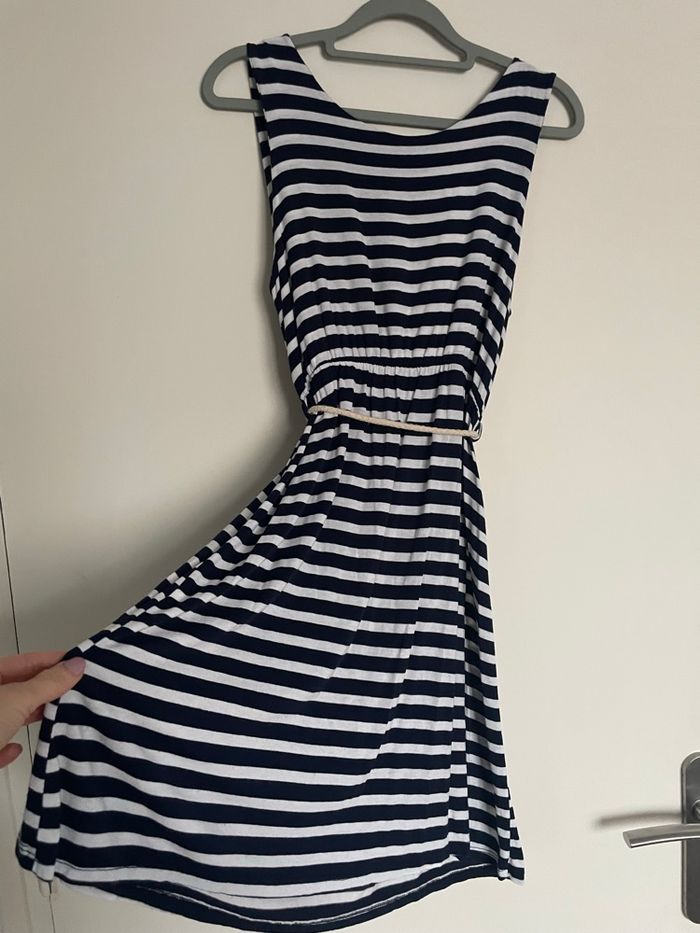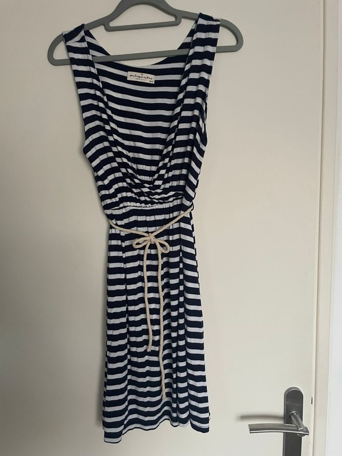 Robe courte rayée blanc et marine Sans manche Marque Premium taille S/M Ceinture en corde à nouer