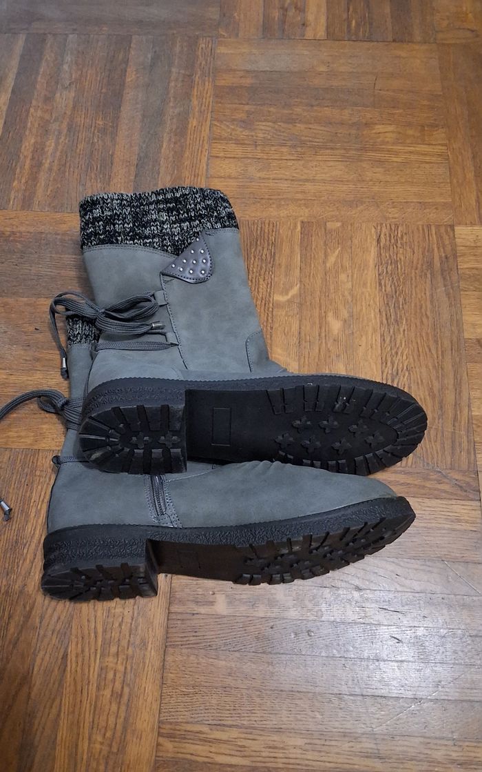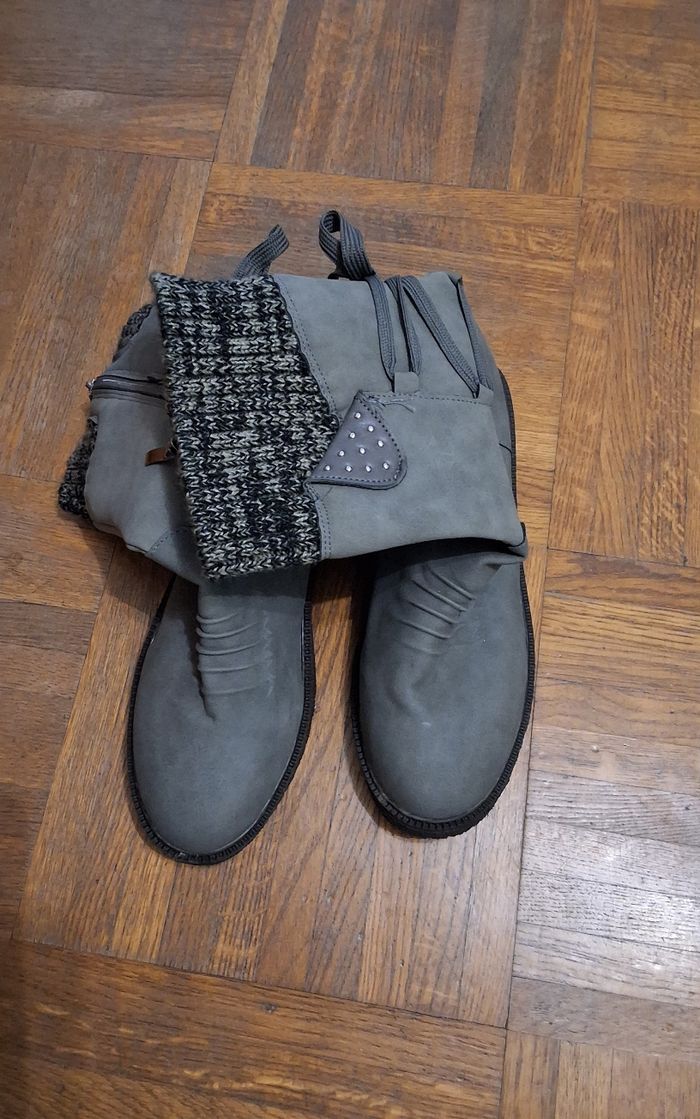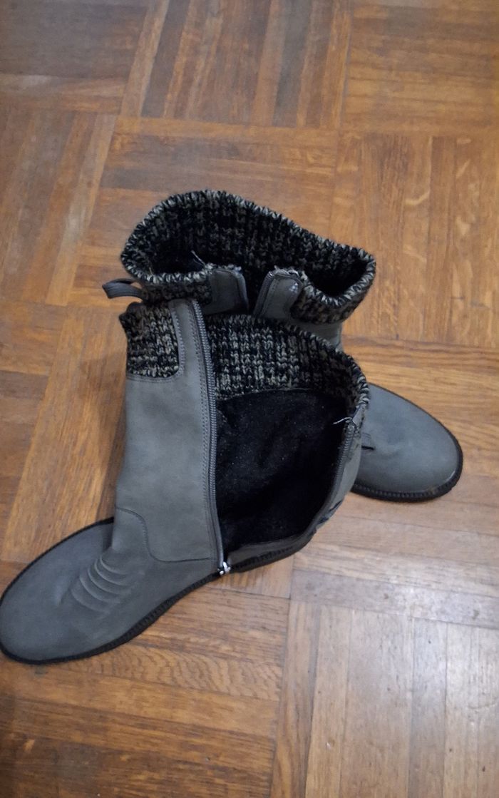 Bottines fourrées de couleur grise Le haut de la bottines est en laine Neuf