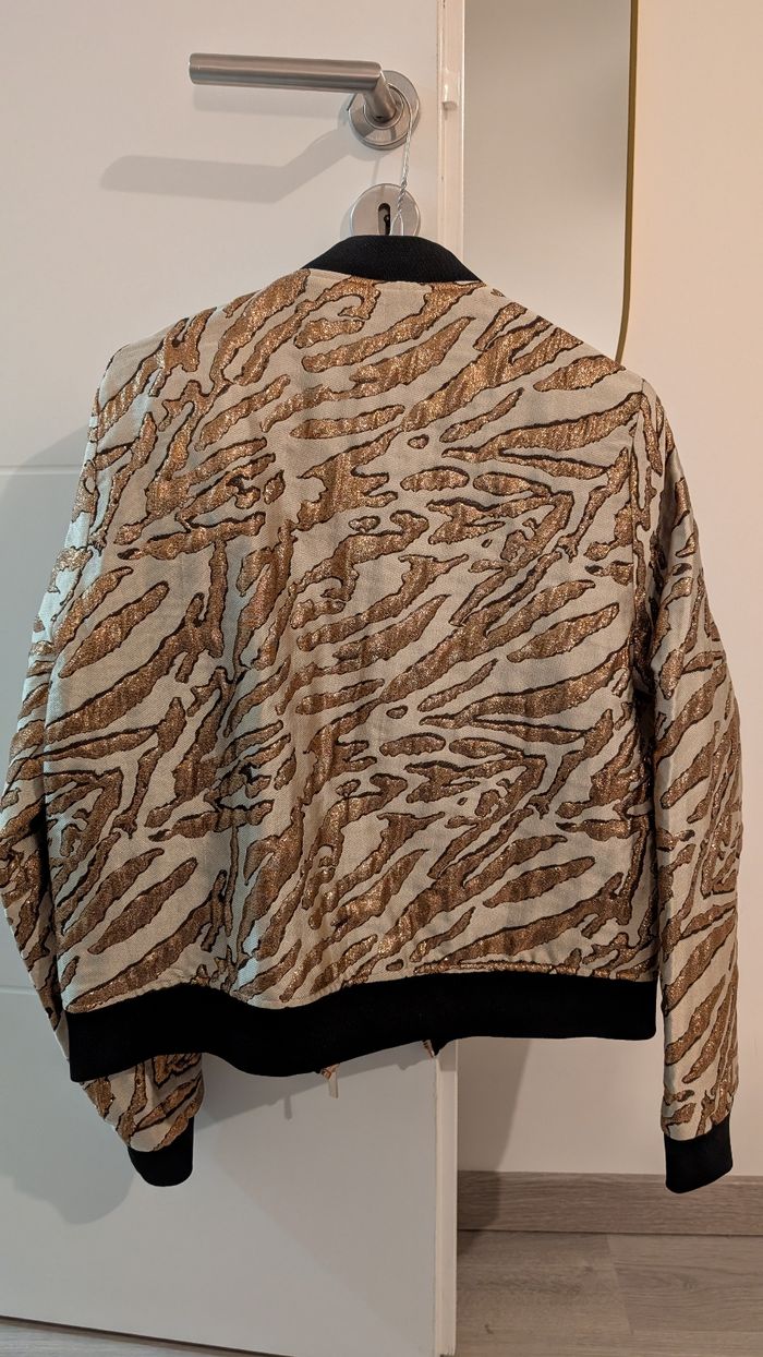 Bonjour, Je vends ce magnifique bombers de la marque Vila en taille 40 de couleur beige avec du fil doré pour les rayures et un effet peau de tigre 🐅. Il n'a jamais été porté. C'est une très belle pièce à avoir dans son dressing. N'hésitez pas à faire une offre 🙂.
