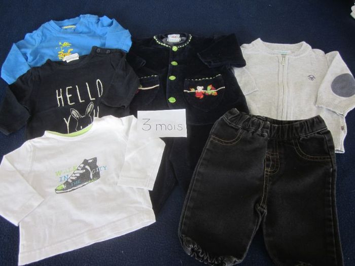 3m, gilet + ensemble 2 pièces + 3 hauts ml + jean, orchestra, obaibi, gemo, kiabi