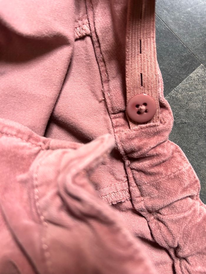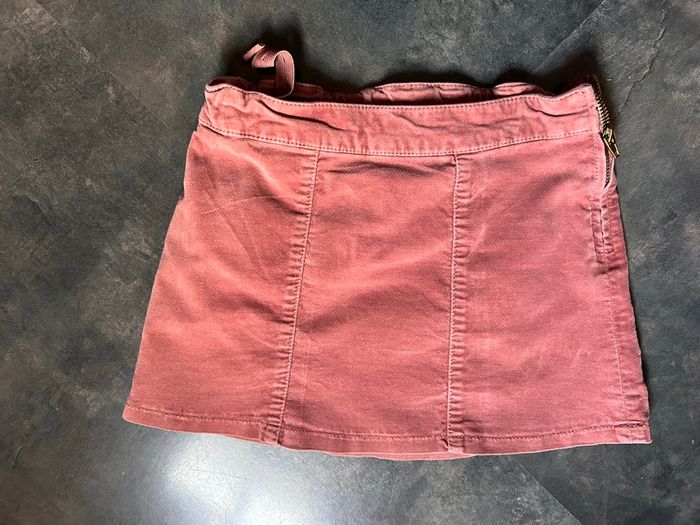 Jupe trapèze en velours ras stretch vieux rose Réglable à la ceinture Fermeture latérale Taille 5 ans 110 cm 98% coton 2% elastane Marque Z
