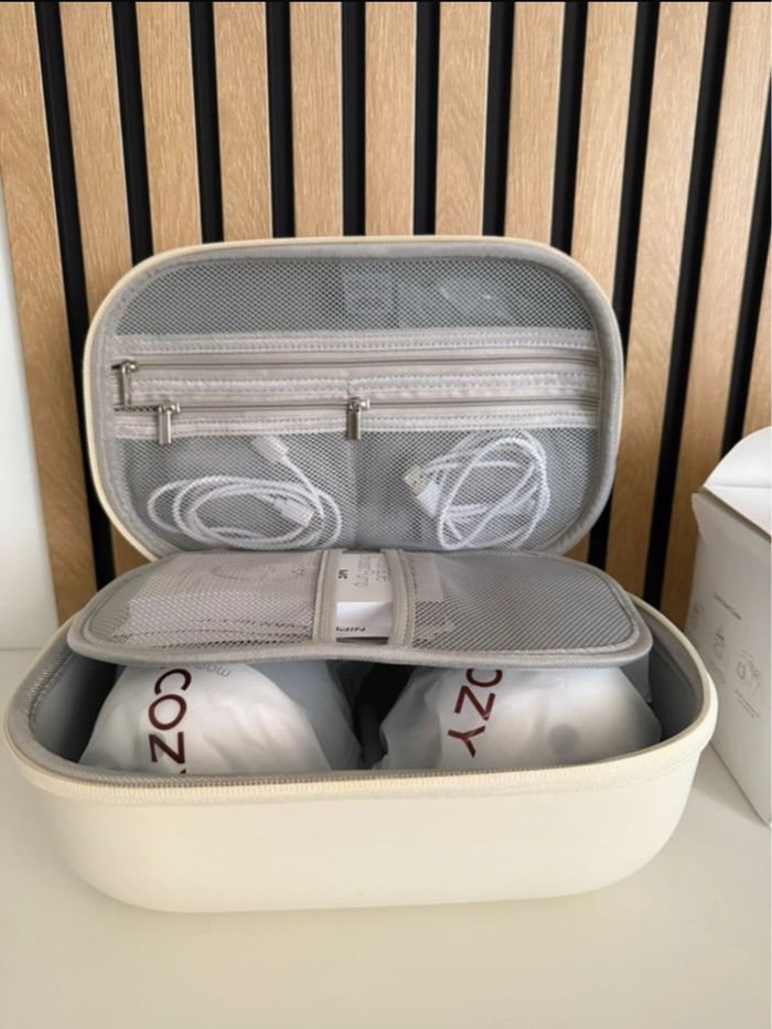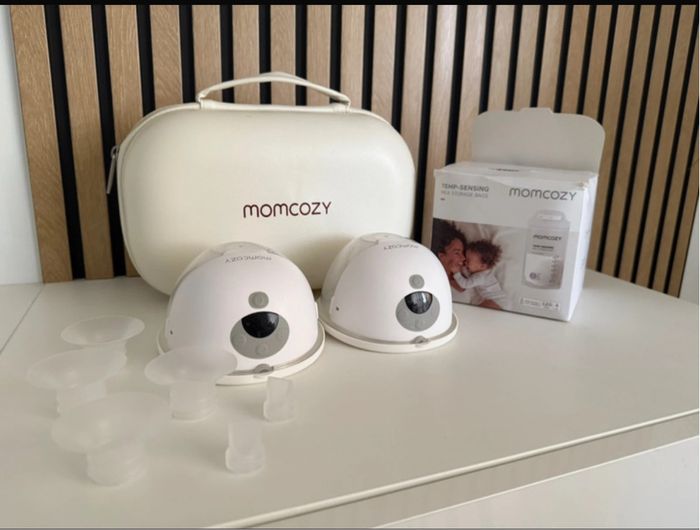 Tire-lait électrique double Momcozy. En parfait état, utilisé brièvement. - Comprend deux tire-laits Momcozy. - Livré avec un étui de transport. - Livré avec plusieurs accessoires. - Comprend également des sacs de conservation pour congeler le lait.