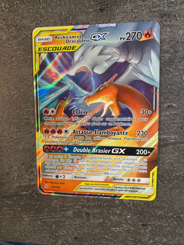 Carte Pokémon Escouade Reshiram Dracaufeu GX20/214