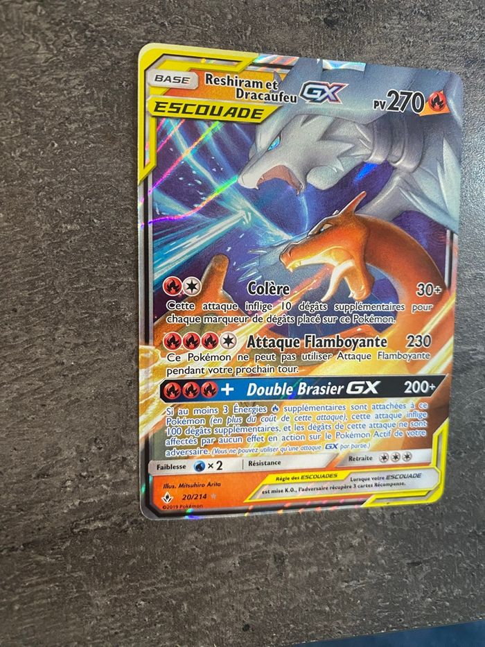 Carte Pokémon Escouade Reshiram Dracaufeu GX20/214  - photo numéro 1