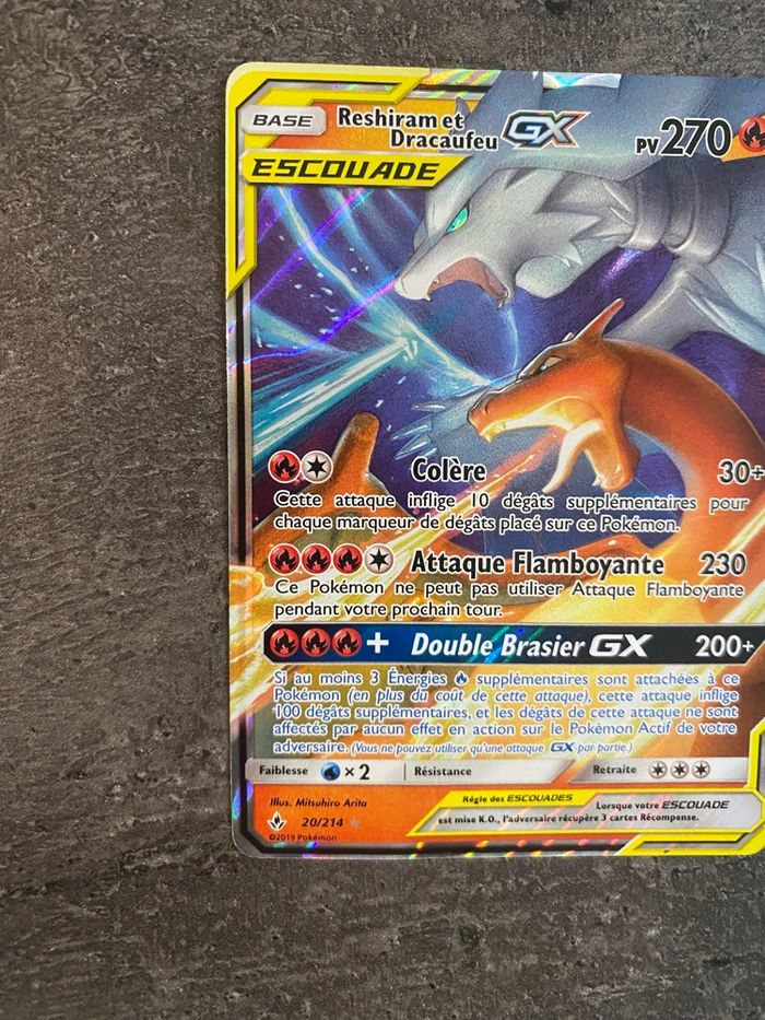 Carte Pokémon Escouade Reshiram Dracaufeu GX20/214  - photo numéro 6