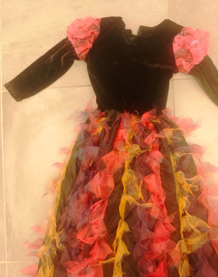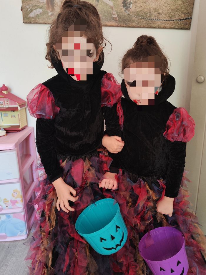 Déguisement vampire pour petite fille 5-6 ans, velours noir, très bon état.
