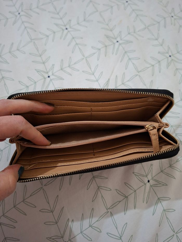 Je vends ce porte-monnaie en similicuir noir. - Type de produit : Porte-monnaie - Univers : Femme - Couleur : Noir - Matière : similicuir - Fonctionnalités : Multiples compartiments et rangements Très bon état léger défauts vu sur photos N'hésitez pas à me contacter pour plus d'informations. #jessdestock_autre