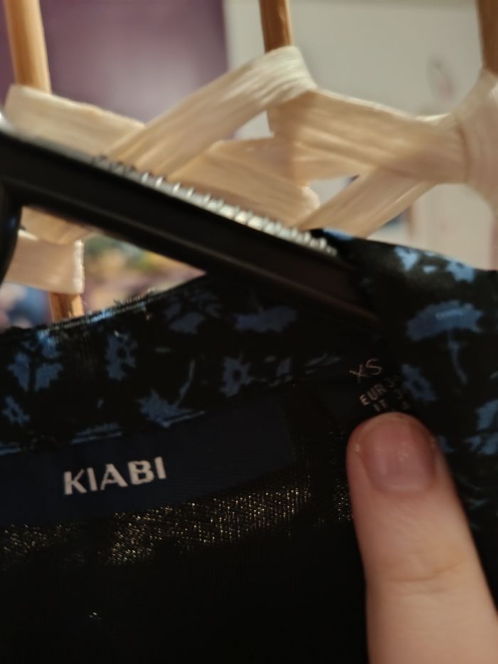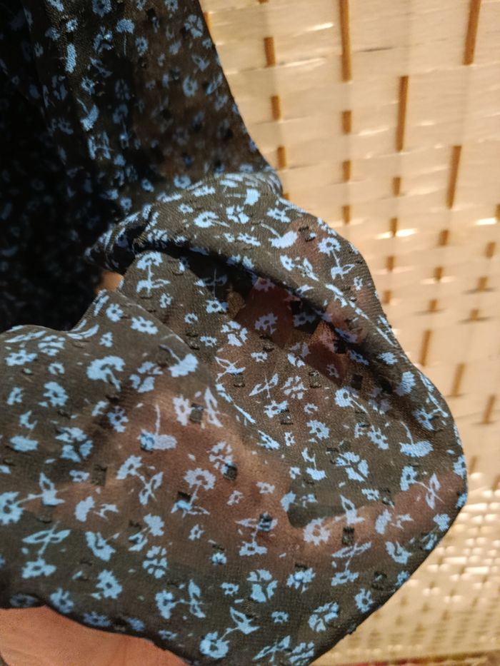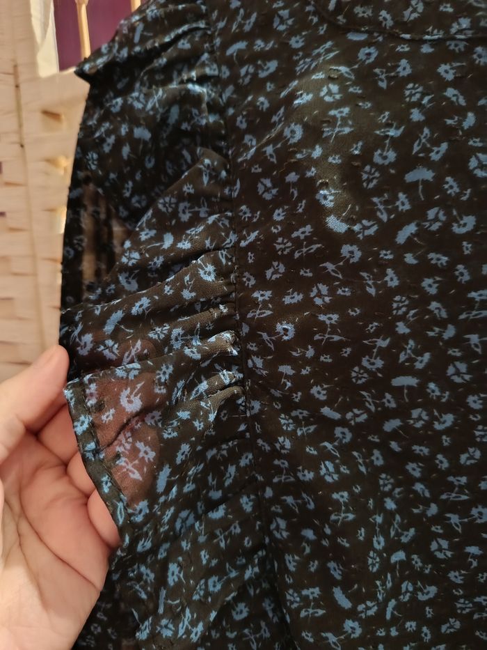 Blouse noir motif fleur bleu - photo numéro 7