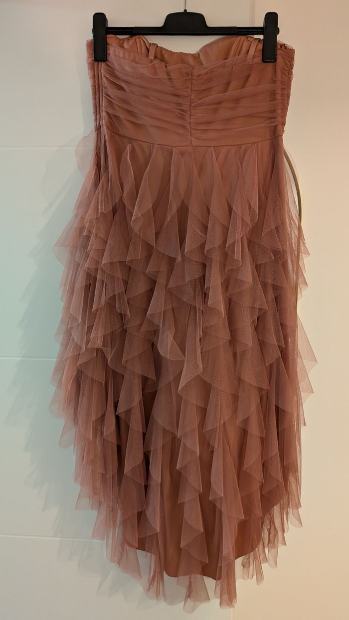 Bonjour, Je vends cette magnifique robe de soirée bustier ( avec la possibilité de mettre des bretelles si nécessaire, elles seront vendues avec la robe) de couleur vieux rose de chez Bréal en taille 42. La robe est plus courte devant, elle arrive au-dessus de mes genoux (je fais 1m75) et elle est plus longue derrière pour un effet traine (sans toucher le sol) . Elle est en parfait état car n'a été portée qu'une seule fois. N'hésitez pas à faire une offre 🙂.