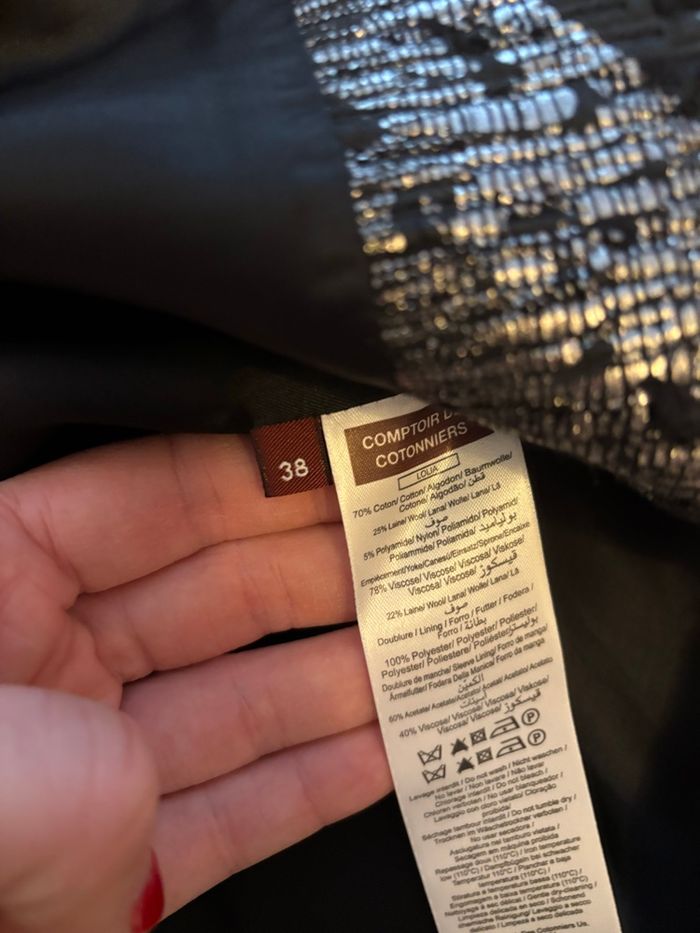 Superbe veste blazer Comptoir des Cotonniers noir et argenté, taille 38. ✨ Parfait état Chic et facile à associer : sublime avec une petite robe noire, un jean slim ou oversize. Idéale pour un look élégant de jour comme de soirée. Envoi rapide et soigné 📦