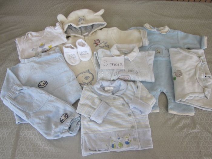 3m, manteau à capuche + combi + body ml + ensemble velours 2 pièces + pyjama velours + combi velours sans manche + veste + chaussons, twinnies, kiabi, tex