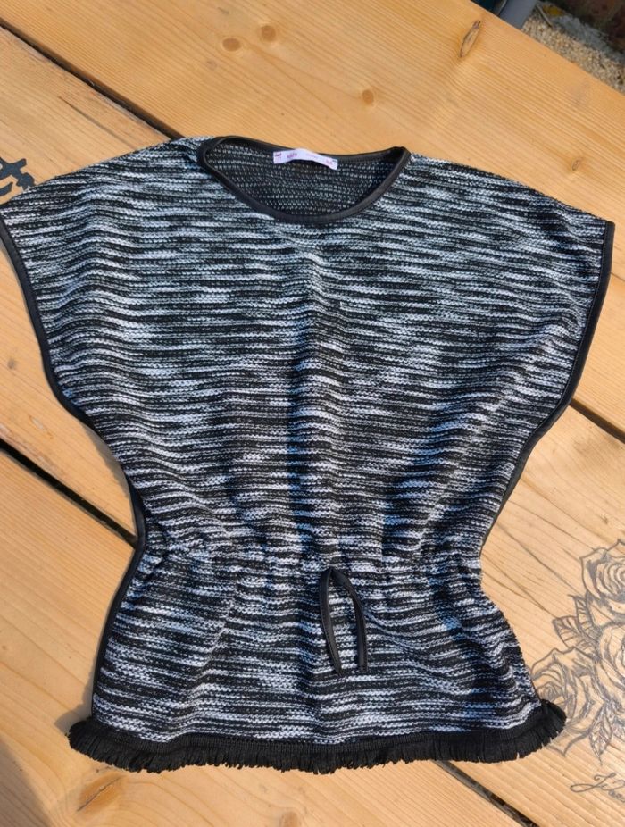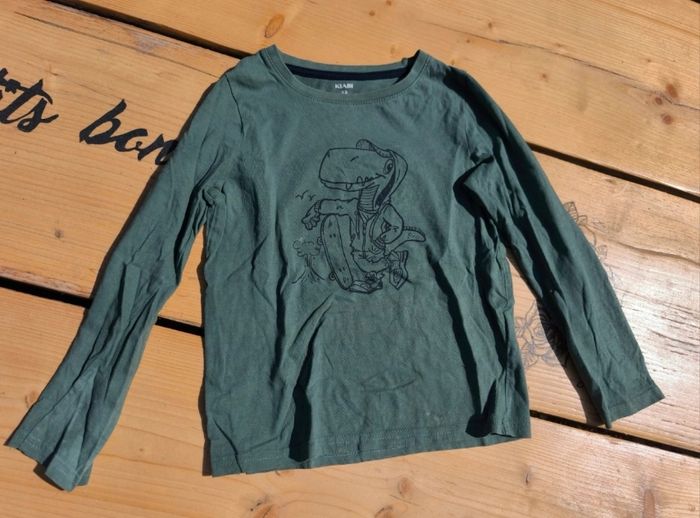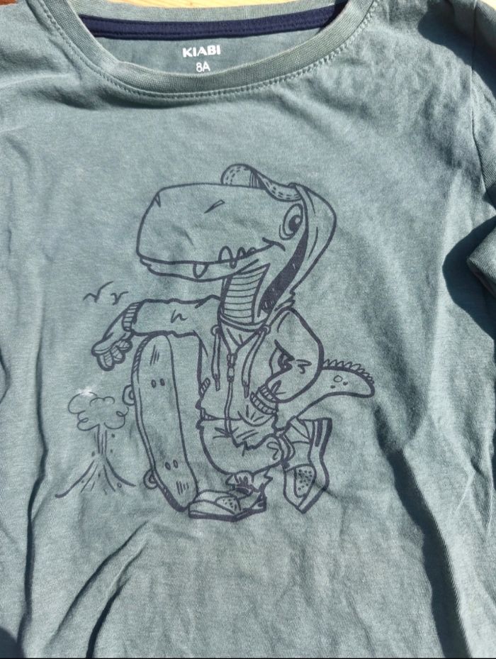 Lot vêtements fille Taille 8 ans √ Pull gris/noir manches courtes, ceintré à la taille GEMO 66% polyester 34% coton √ Pull col roulé rose maches longues √ T-shirt vert manches longues KIABI (tâche voir photo 8) 100% coton √ Jogging noir, taille ajustable (photo 12) et tâche usure (photo 11) KIABI 100% coton