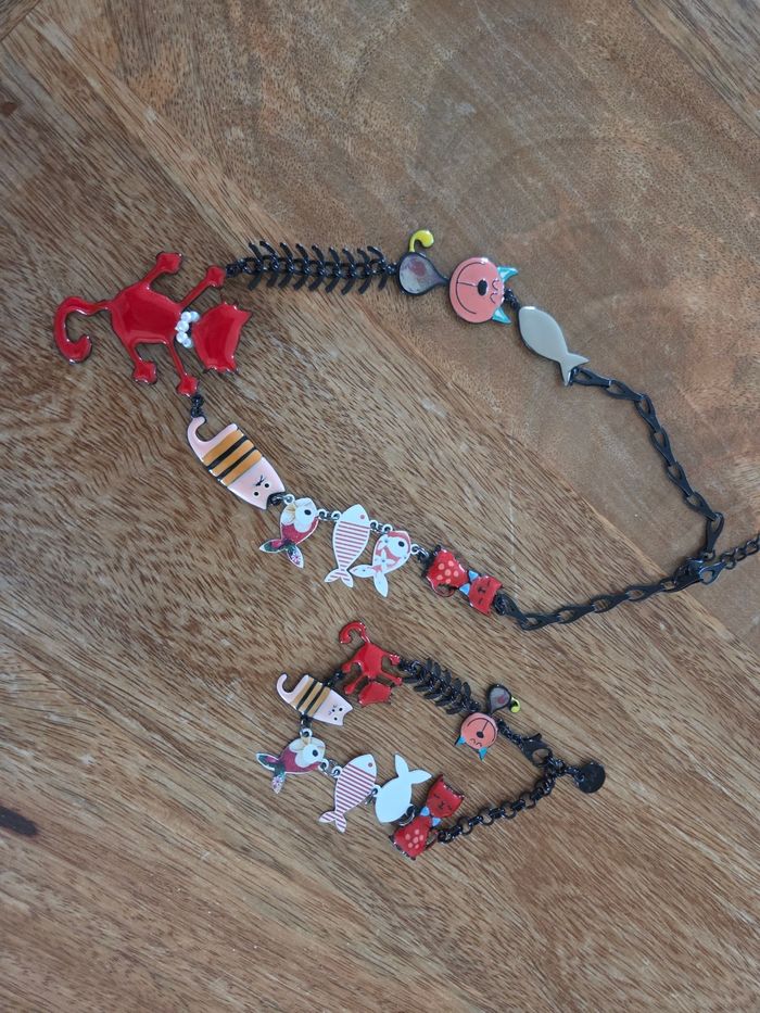 Vends collier et bracelet chat rouge. Achetés à un magasin artisan.