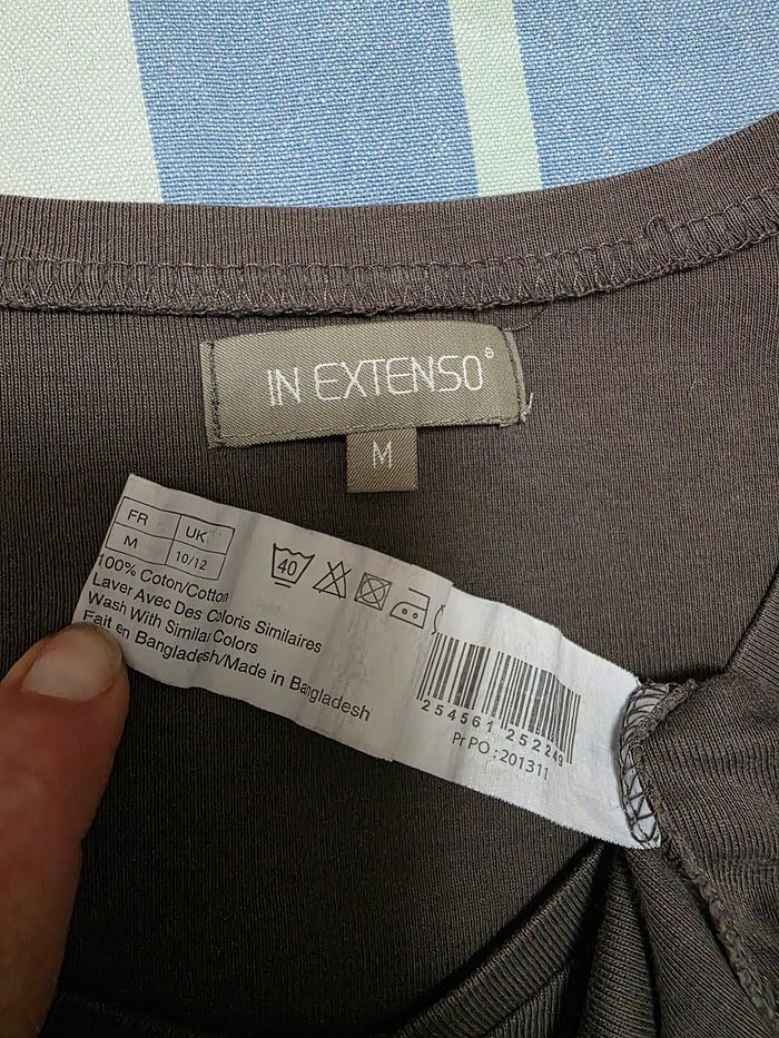 Tee-shirt,marron, ML,en très très bon état, en coton, largeur d'épaule 32cm, largeur sous bras 42cm, longueur 50cm, marque In Extenso =5€ - photo numéro 4