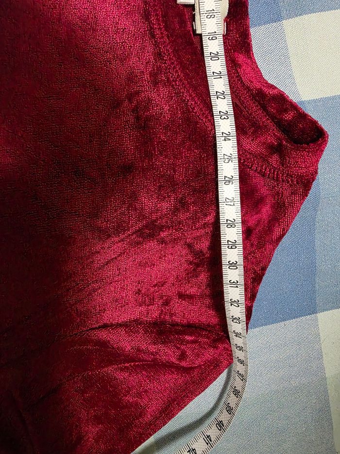 Tee-shirt,bordeaux,façon velours, ML,en très très bon état, en viscose&polyester, largeur d'épaule 35cm, largeur sous bras 43cm, longueur 55cm, marque Pablo Paris/ Made in France=7€ - photo numéro 8