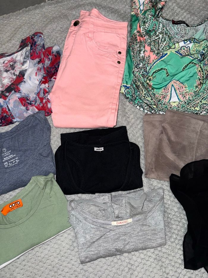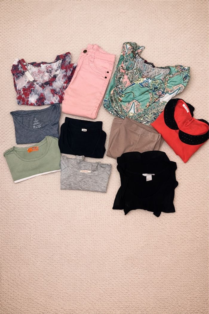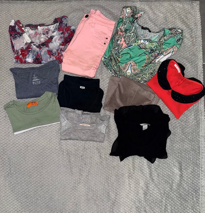 Lot revendeur de 10 articles Composé de: 7 tee shirt 1 jean 1 robe 1 jupe Tailles et marques mélangées 🥰 (Lot1)