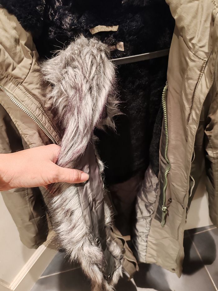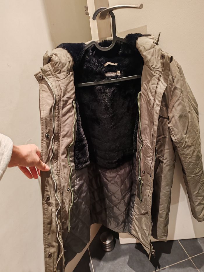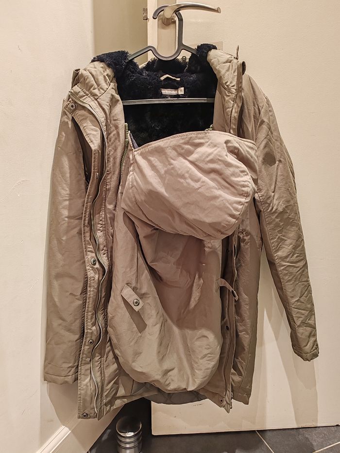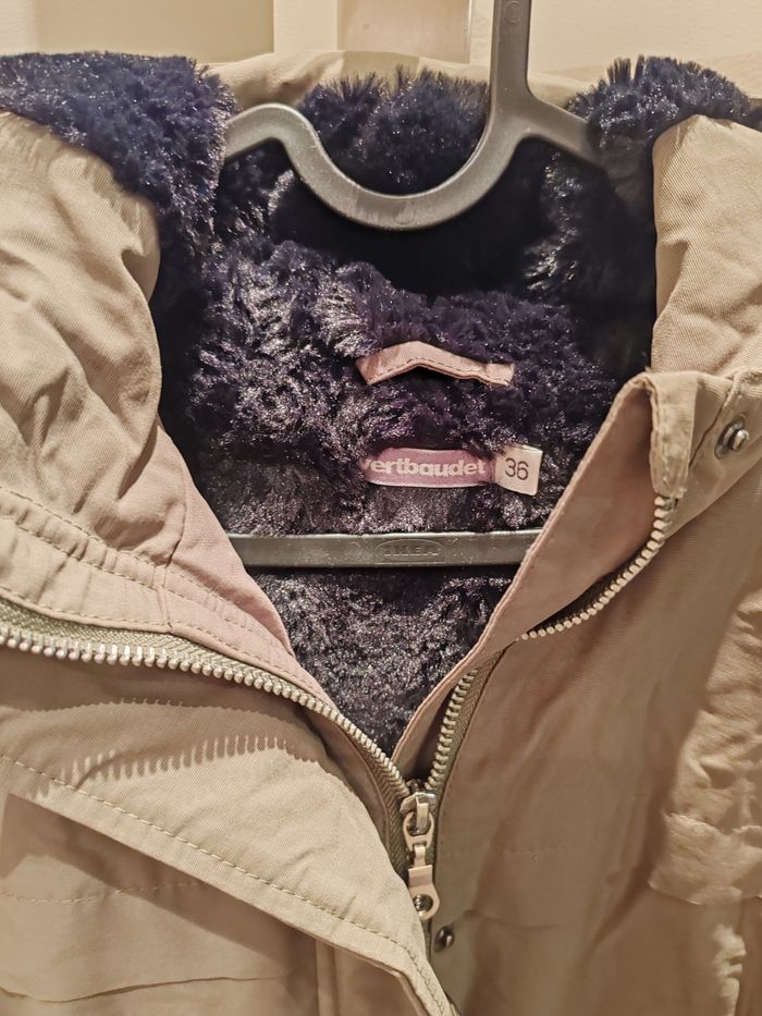 Parka évolutive de pré et post grossesse Très peu porté Vertbaudet taille 36 Fourrure capuche et protège bébé amovibles, intérieur fourré Petit défaut : une languette de la fermeture éclair du protège-bébé manquante mais il ferme quand même