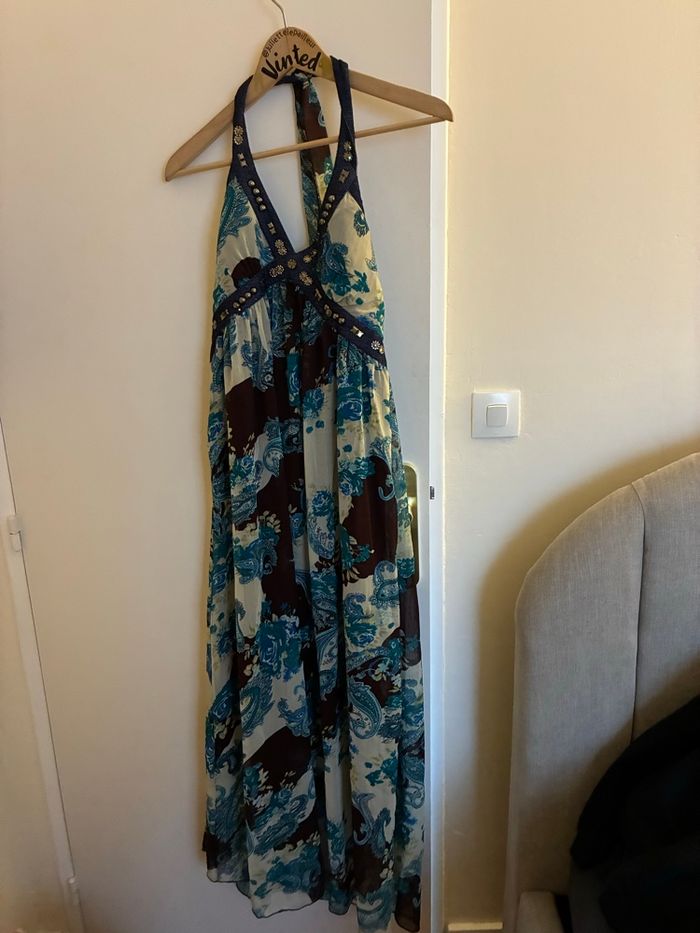 Robe longue d’été bleue avec strass – À nouer dans le cou – Taille S – Très bon état - photo numéro 1
