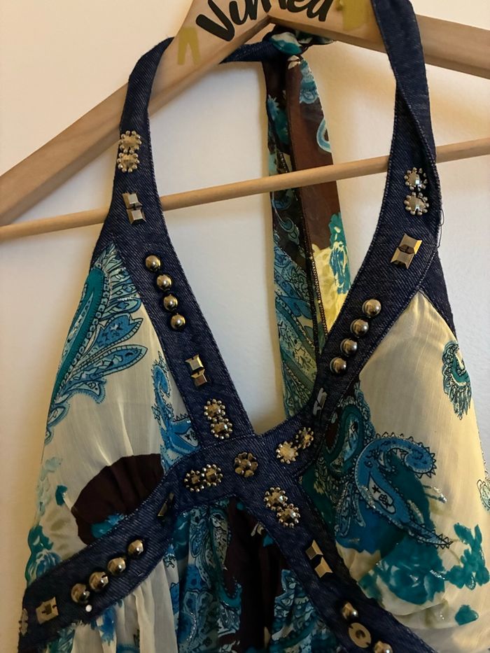 Robe longue d’été bleue avec strass – À nouer dans le cou – Taille S – Très bon état - photo numéro 3