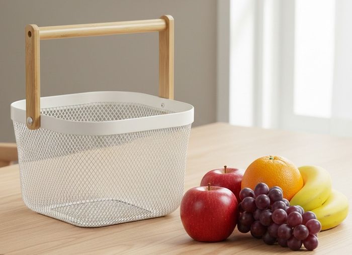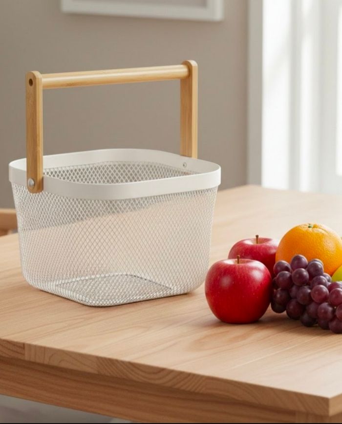 Panier en métal et bois blanc neuf