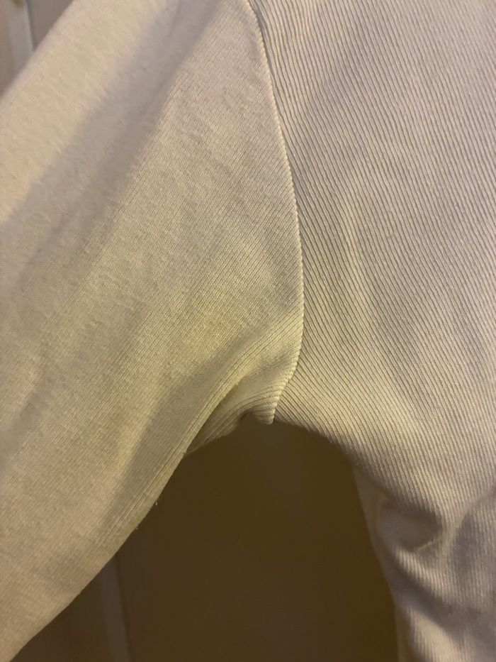 À noter : Légère coloration jaunie sous les aisselles Étiquette intérieure effacée (taille estimée S) ✔️ État : bon état malgré les défauts signalés ✔️ Style : casual et original Idéal pour petit budget ou usage quotidien. Envoi rapide et soigné 📦 N’hésite pas à me contacter pour plus d’informations ou de photos détaillées.