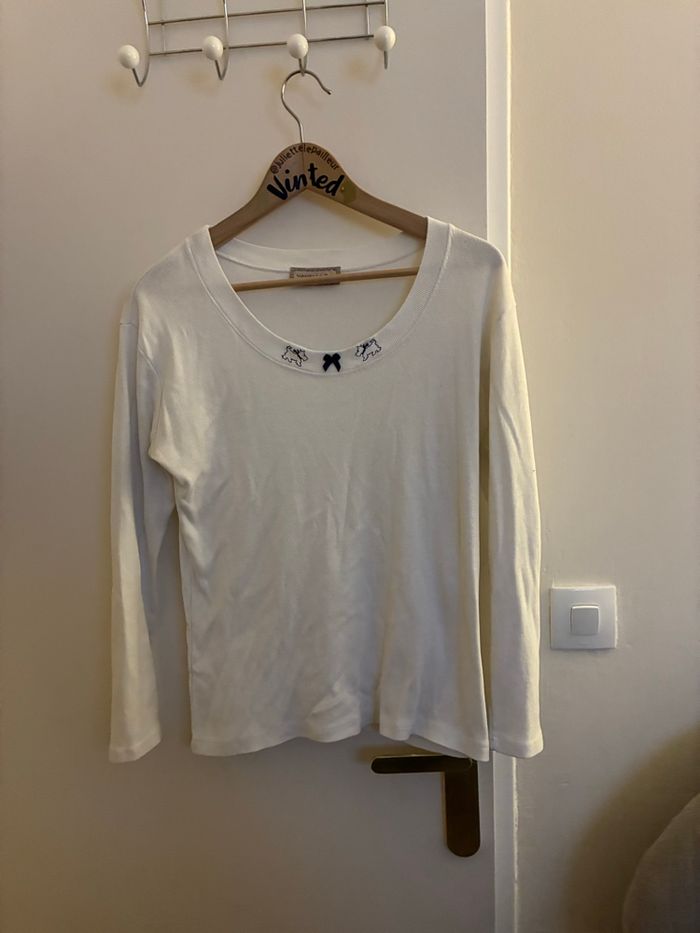 Tee-shirt blanc manches longues motif chien Vanessa Bis Paris – Taille S – Bon état  - photo numéro 2