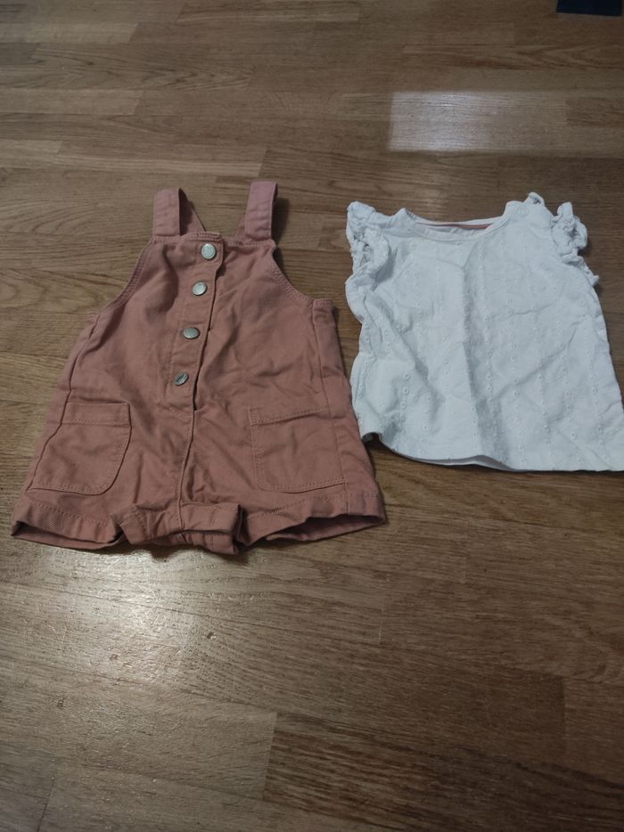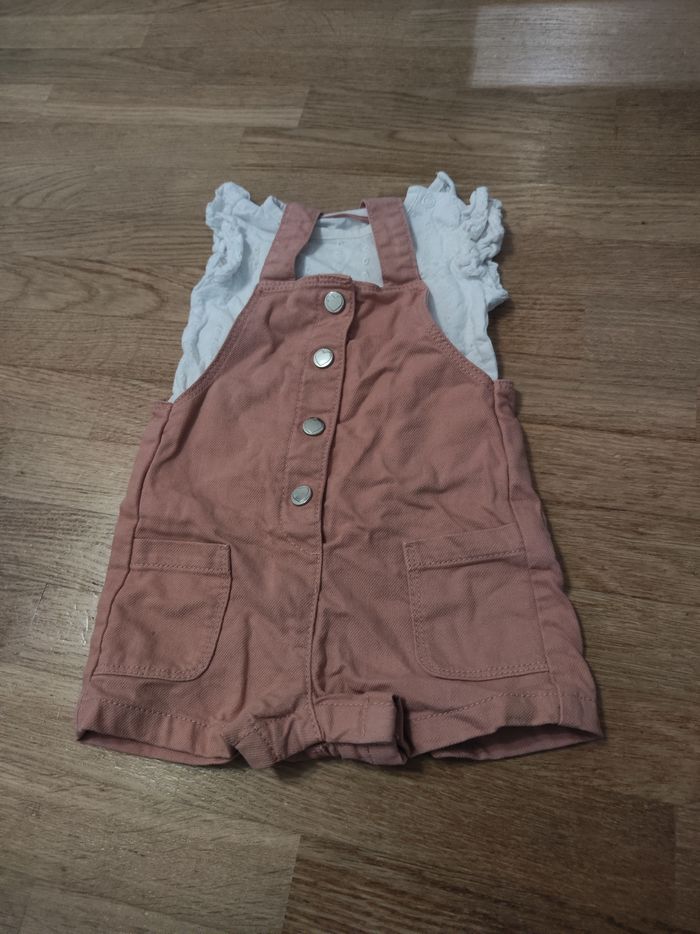 Ensemble salopette courte et débardeur fille 6 mois - photo numéro 1