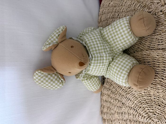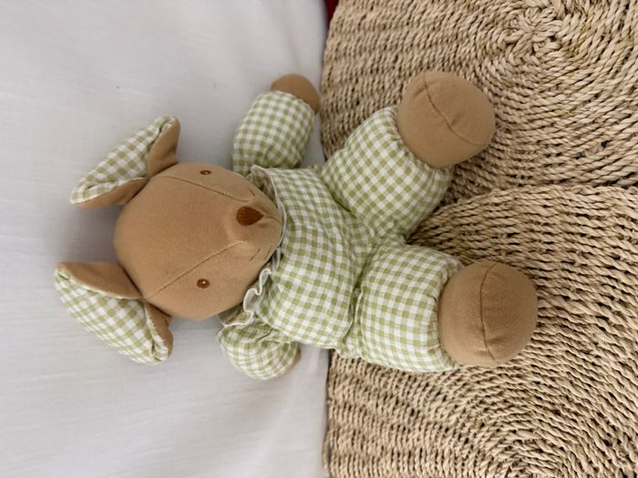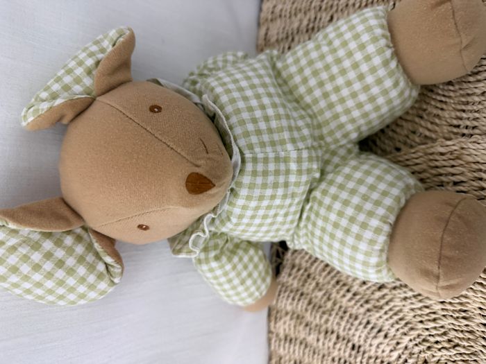 doudou souris ajena peluche doudou souris tissus a carreaux vert + grelot  - photo numéro 6