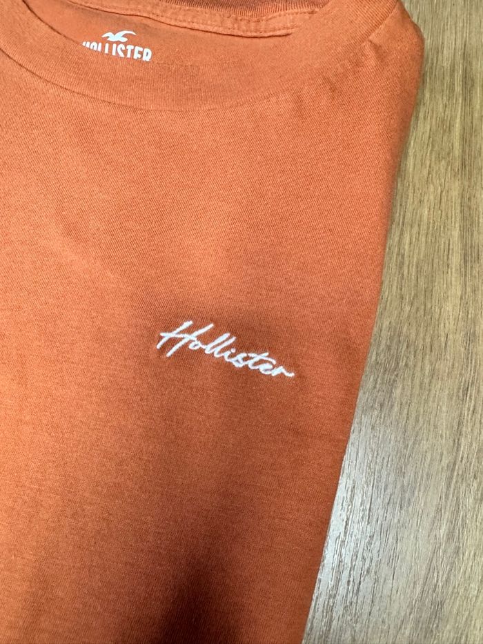 T-shirt Hollister orange avec logo brodé en très bon état : • aucuns défauts • porté seulement quelques fois • taille S • coupe ample • 100% coton 📦 envoi rapide et protégé