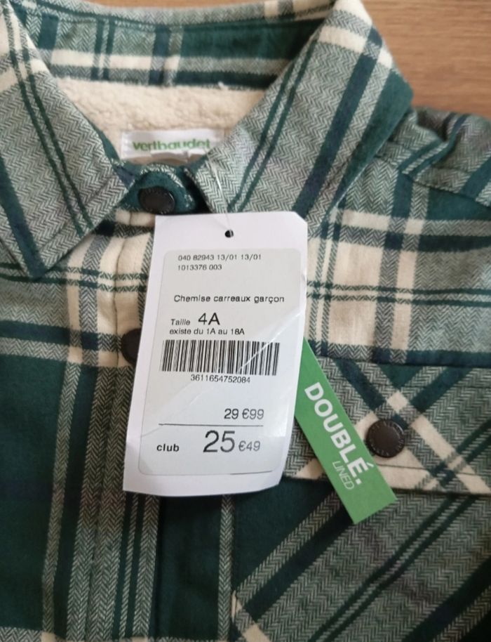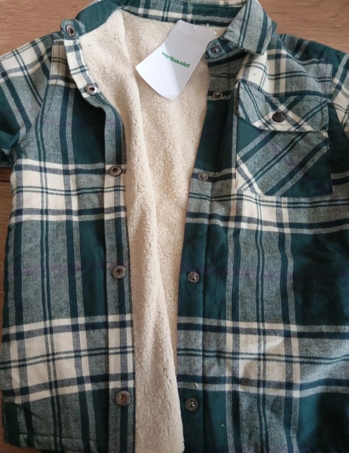 Chemise a carreaux verte de chez Vertbaudet Neuve encore étiquetée Doublure en tissu bouclette blanc. Bien chaude et épaisse Boutons pressions Peut être utilisée en veste ou en chemise