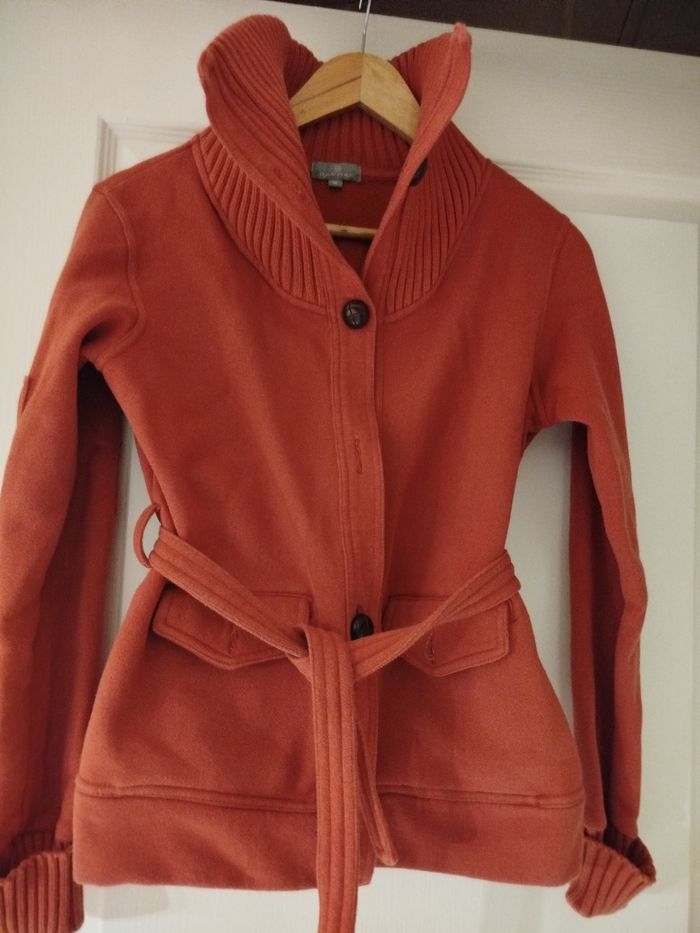 Vends veste femme couleur corail ferme avec des boutons et une ceinture. Taille : M Marque : Naf Naf Couleur : Corail